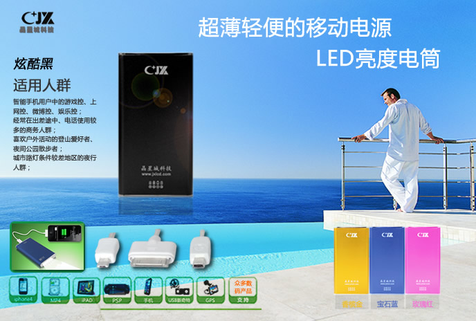 本移动电源可对大部分使用5V充电的手机、MP3、MP4、PSP、平板电脑等数码设备进行大电流快速充电。相对于其它同类产品,具有充电快速稳定、锂电芯智能保护、电能转换效率高、使用简单、便于携带等优点: